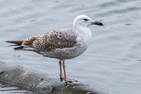 Plenty of Black-headed Gulls and Greater Cormorant, Mallard, around 100 Tufted Duck, 4 Pochard and several Little Grebe. There were several larger gulls on concrete pillars in the centre of the river but as they periodically flew closer I could see that there was a mixture of Herring and Caspian Gulls. Several landed reasonably close to where I was stood and I managed some reasonable shots of first winter and adult Caspian Gull.